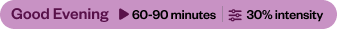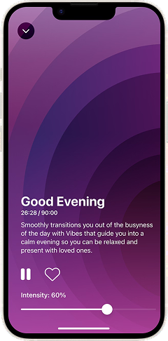 | Be present for yourself and your family while melting away the stresses of your day. Try Good Evening Vibe starting at 30% intensity for 60-90 minutes. |
