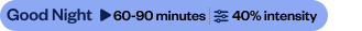 | Try Good Night Vibe 30 minutes before your bedtime routine, starting at 40% intensity for 60-90 minutes. |