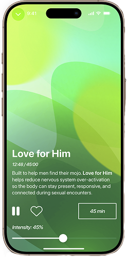 Try Love for Him during moments of intimacy for a greater sense of presence, confidence, and capability for pleasurable connection, starting at ___% intensity for ____ minutes. |
